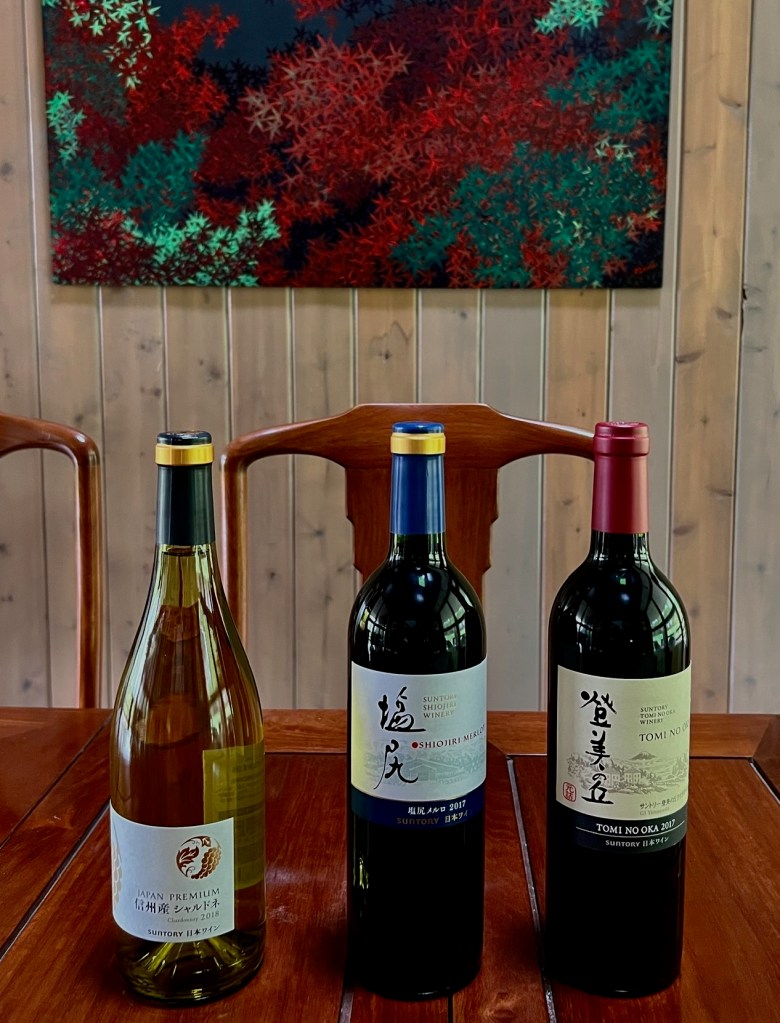 We last reviewed wines from Suntory when we held a tasting of Suntory wines in Tokyo in November 2019. See here. We were quite happy with the 2018 Shinshu Chardonnay and the 2015 Shiojiri Merlot. Not surprisingly, we loved the Shiojiri Iwanohara Merlot 2012, which then sold for 8000 yen.